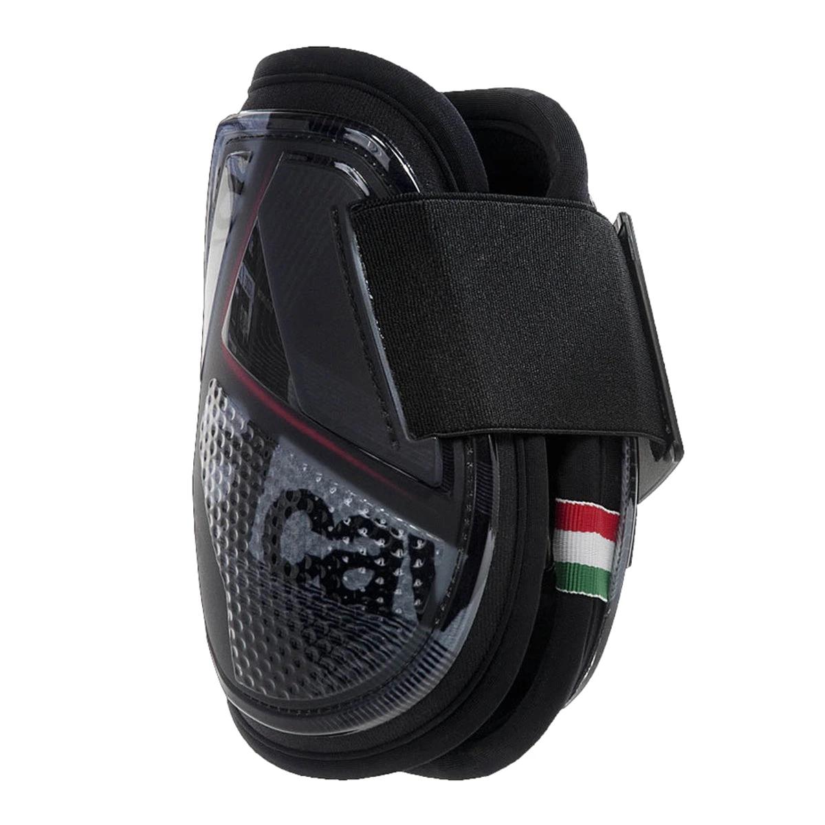 The opera horse boot is featured by a single elastic band. The elastic band prevents the boot from slipping and, at the same, it ensures maximum freedom of movement to the horse.