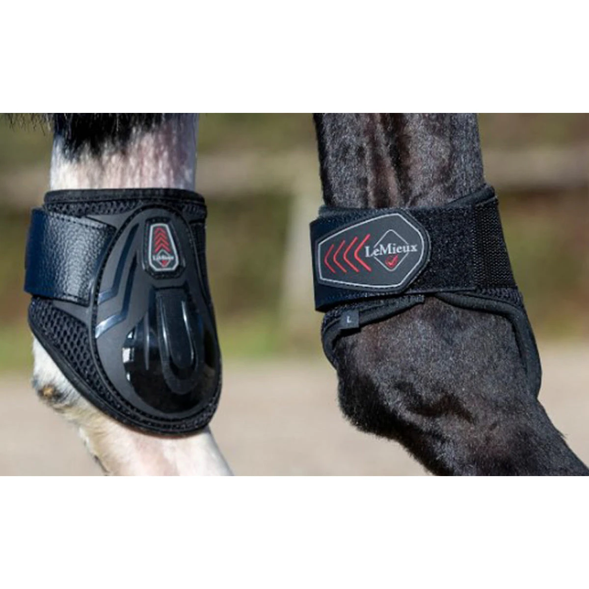 These fetlock boots fully comply with current FEI and BS protective boot rules 2020 in all regards: weight (under 500g), dimension (under 16cm in height) and with non-elastic velcro fastening straps.