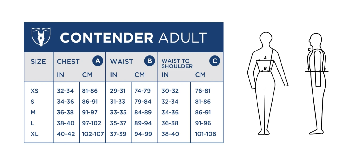 The all-new Contender Body Protector features dual-density padding, an anatomical fit, and ASTM | SEI Certification. Incredibly lightweight and breathable, the Contender is perfect for Eventers or any rider looking for extra protection. Careful construction and tailoring, along with multiple adjustment points, allow for a fuller range of motion and maximum flexibility while in the saddle. The hard-wearing exterior offers a streamlined silhouette, and the flexible back panel can be flipped up to accommodate a high cantle.