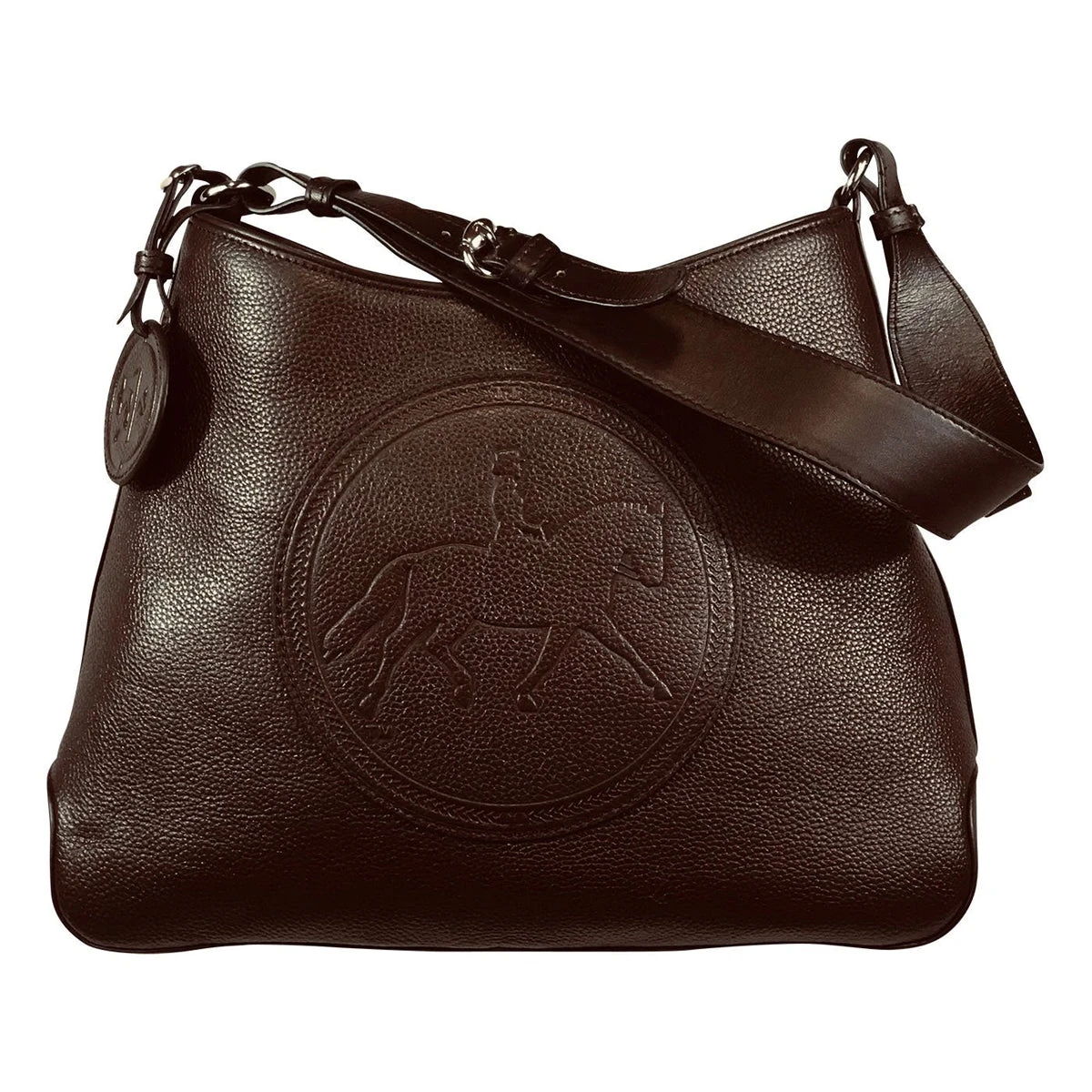 The most popular shoulder bag in the Tucker Tweed stable, the Tweed Manor Tote epitomizes equestrian style and glamour. Completed in pebble grain leather with silver feet and hardware, the idyllic form fits all riders beautifully. While the wide shoulder strap comfortably adjusts for different lengths, this stunner holds its shape on your shoulder or by your feet at a show.