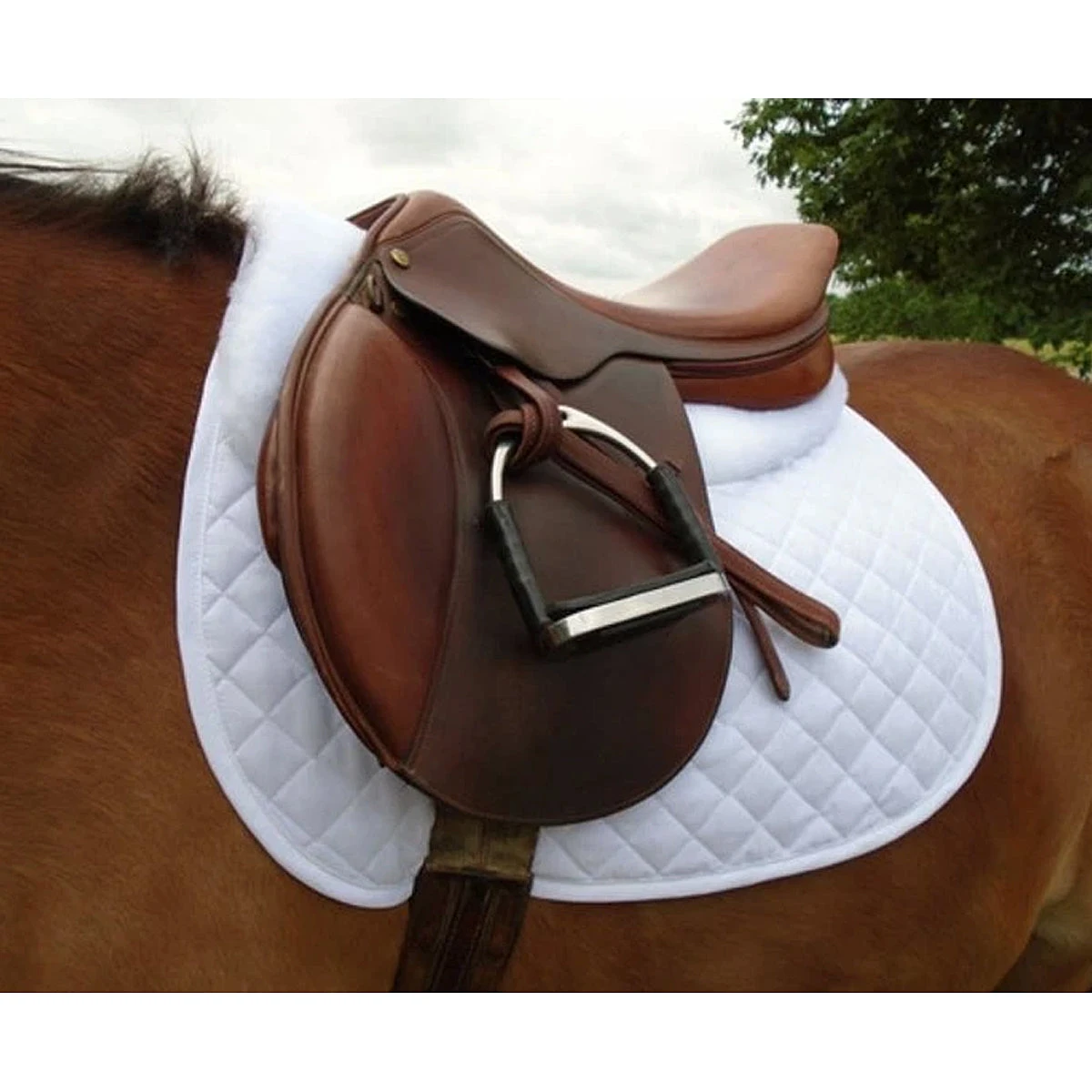We love this wither protection pad from Wilkers because it offers a key hole design for horses with high withers. This keyhole design enables the half pad to offer cushion without bunching or putting excess pressure on the withers. Cotton quilting on top with a faux fleece rolled edge, this pad completes a sharp polished look in the show ring.